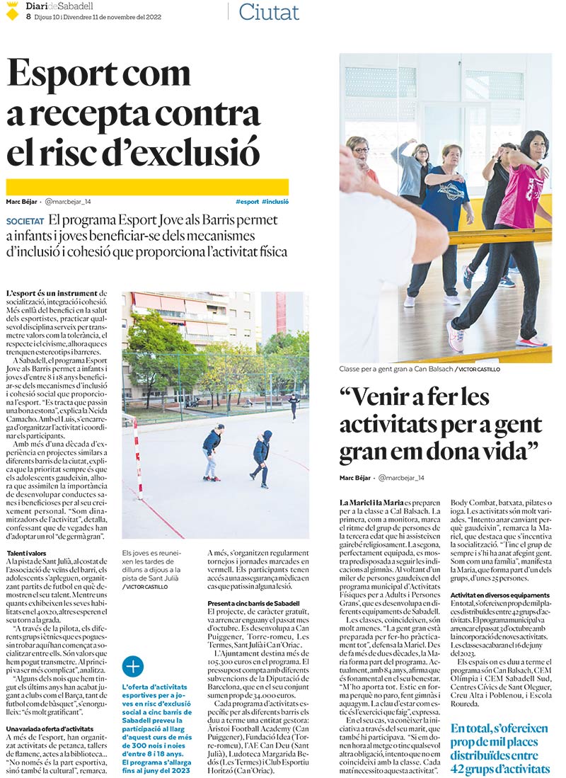 Reproduïm l’article publicat pel Diari de Sabadell el passat 10 de novembre. Moltes gràcies per la difusió.